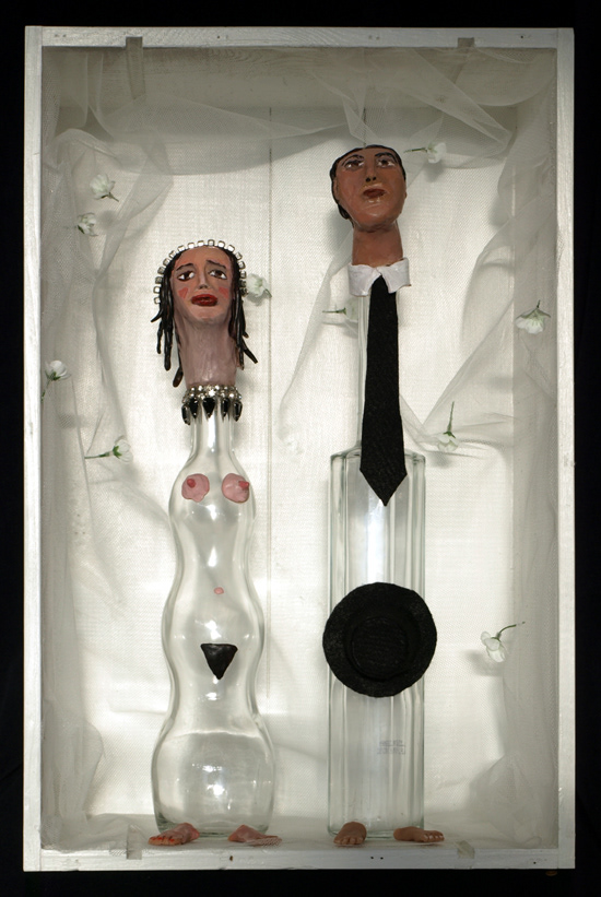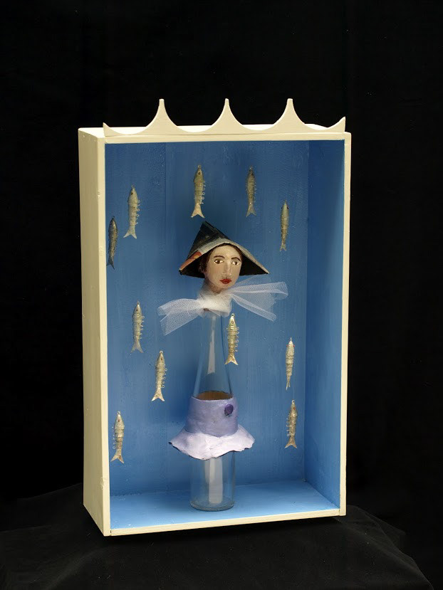 Box Art: wood, leather, cloth, glass, mylar, plexiglass, acrylic paint.