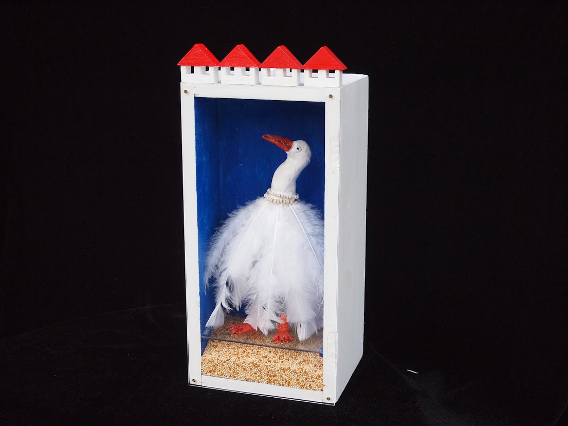 Box Art: glass, wood, rubber, wool, tape, acrylic paint, plexiglass.
