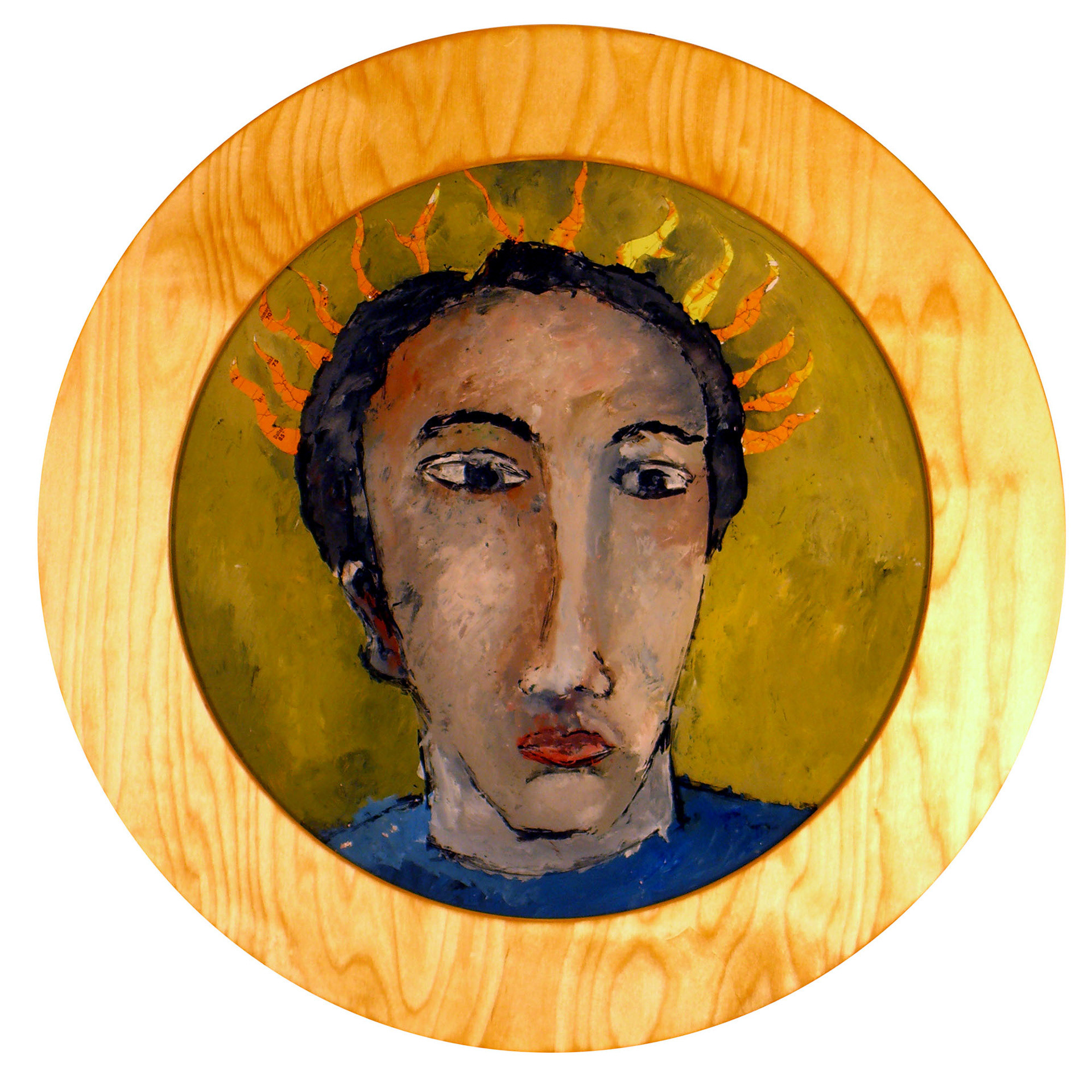 Acrylic on glass in recycled wood frame